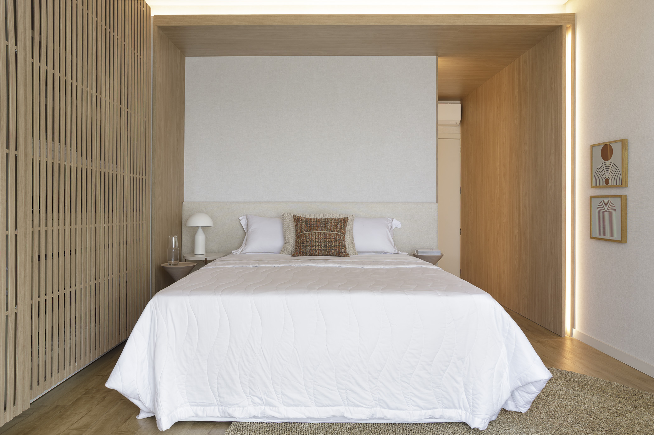 Conhecido carinhosamente como "Apto Mar", este apartamento de praia foi projetado para proporcionar aos proprietários momentos únicos de lazer e descanso. Com vista privilegiada para o mar e localizado em um dos primeiros pavimentos do edifício, o espaço integra perfeitamente a praia de Balneário Camboriú ao living e à suíte principal, cumprindo um dos principais objetivos do projeto: a fusão entre o interior e o exterior.