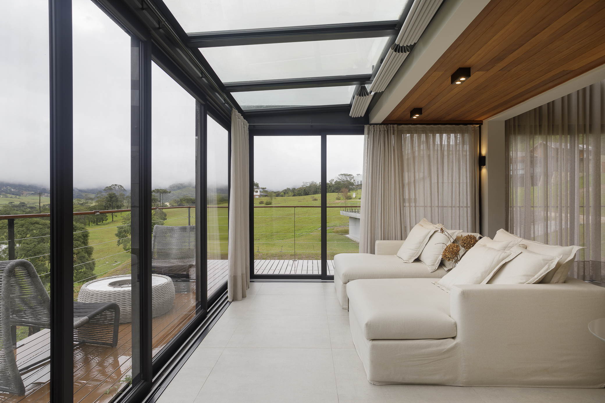 Com vista privilegiada para a paisagem exuberante da Serra Catarinense, a Casa Rancho é um refúgio de três pavimentos que combina conforto, sofisticação e uma integração perfeita com a natureza.