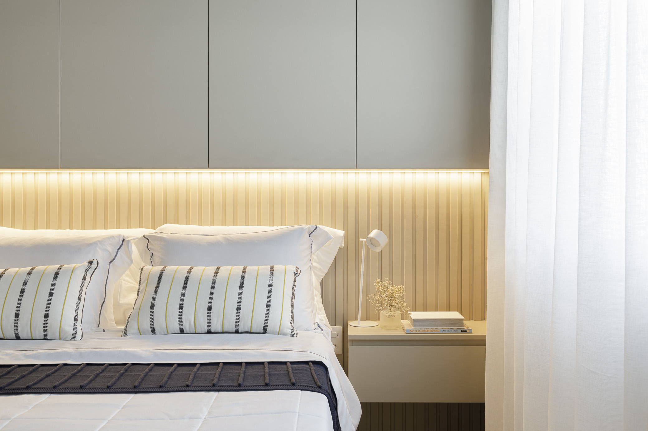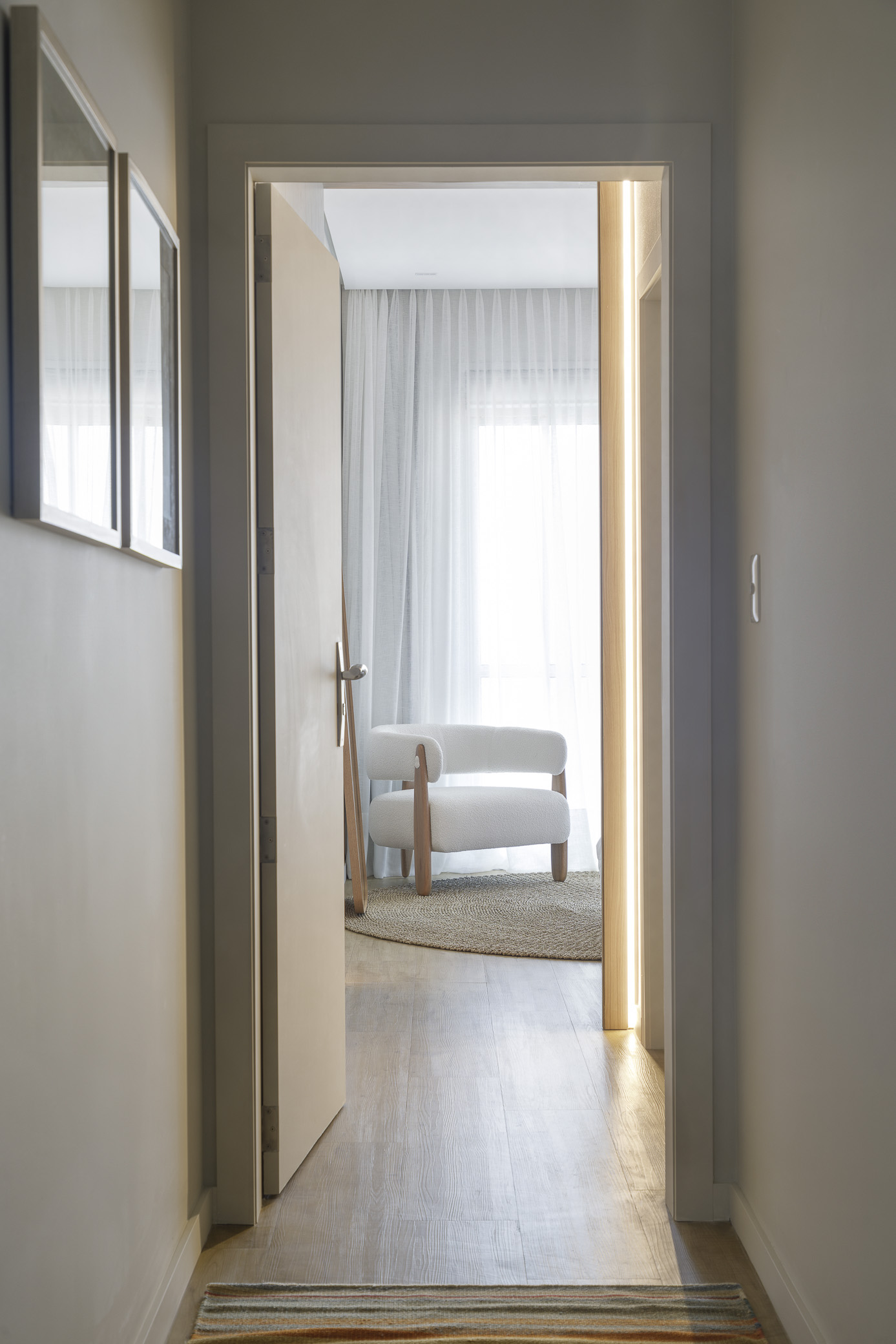 Conhecido carinhosamente como "Apto Mar", este apartamento de praia foi projetado para proporcionar aos proprietários momentos únicos de lazer e descanso. Com vista privilegiada para o mar e localizado em um dos primeiros pavimentos do edifício, o espaço integra perfeitamente a praia de Balneário Camboriú ao living e à suíte principal, cumprindo um dos principais objetivos do projeto: a fusão entre o interior e o exterior.