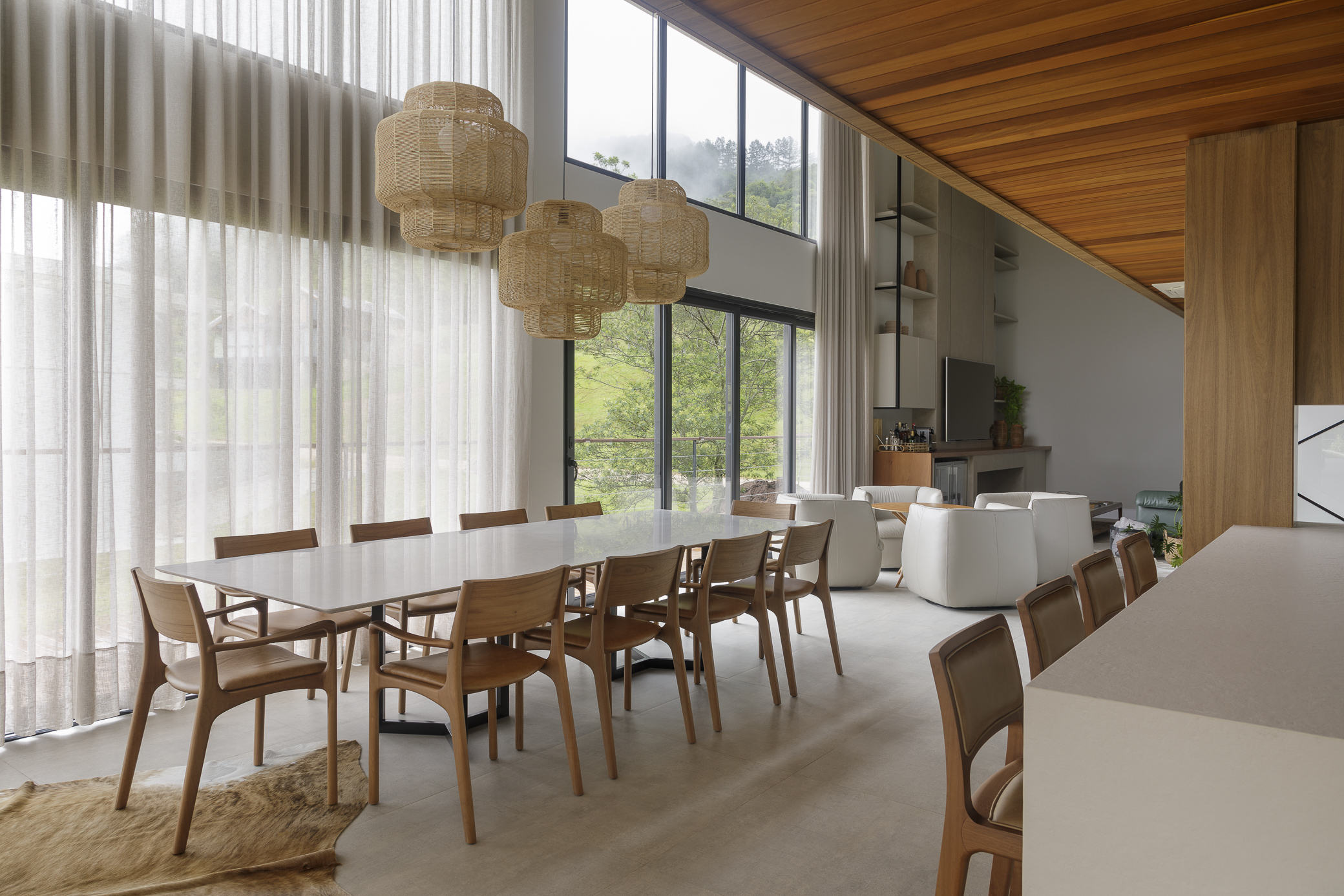 Com vista privilegiada para a paisagem exuberante da Serra Catarinense, a Casa Rancho é um refúgio de três pavimentos que combina conforto, sofisticação e uma integração perfeita com a natureza.