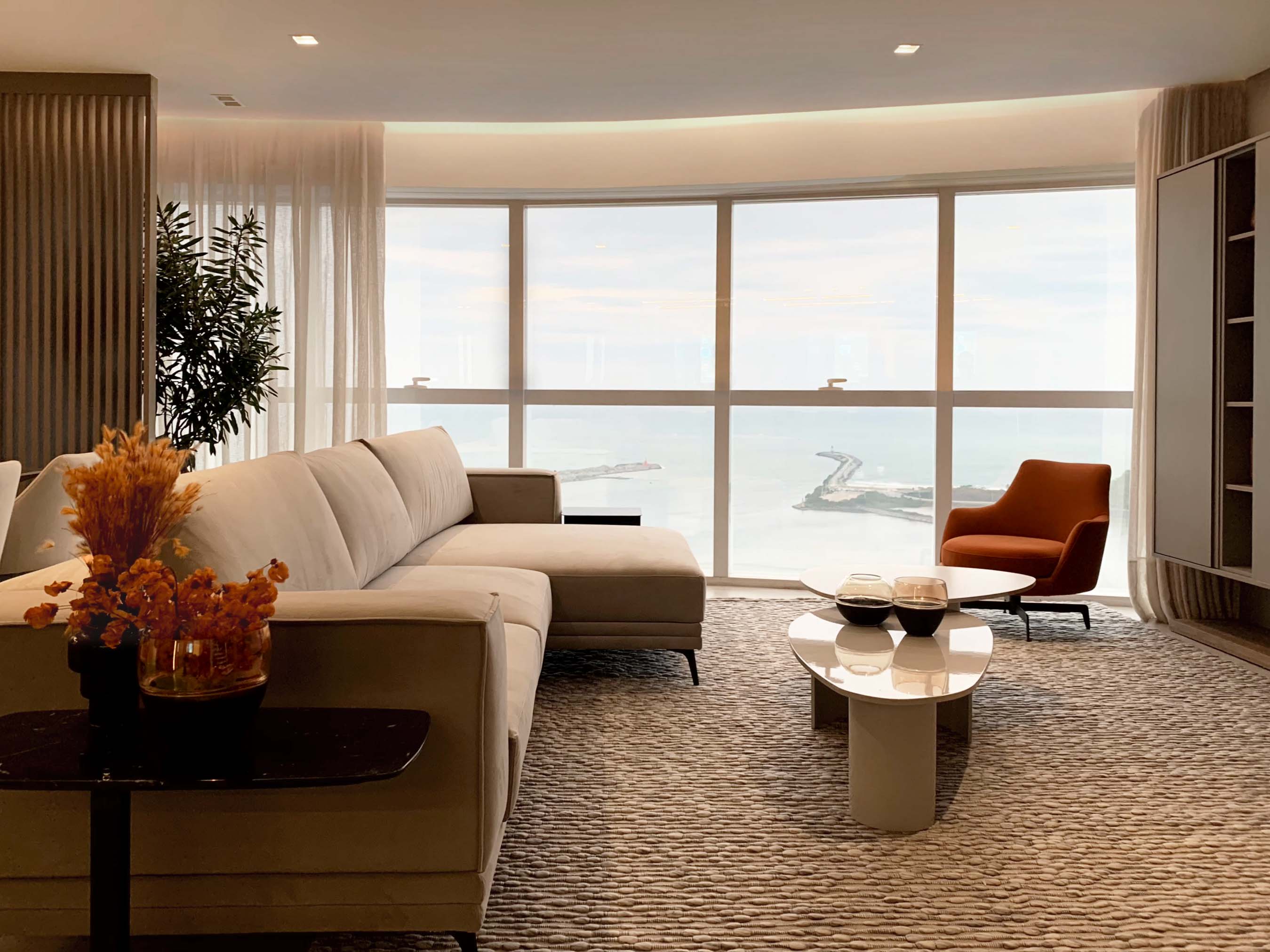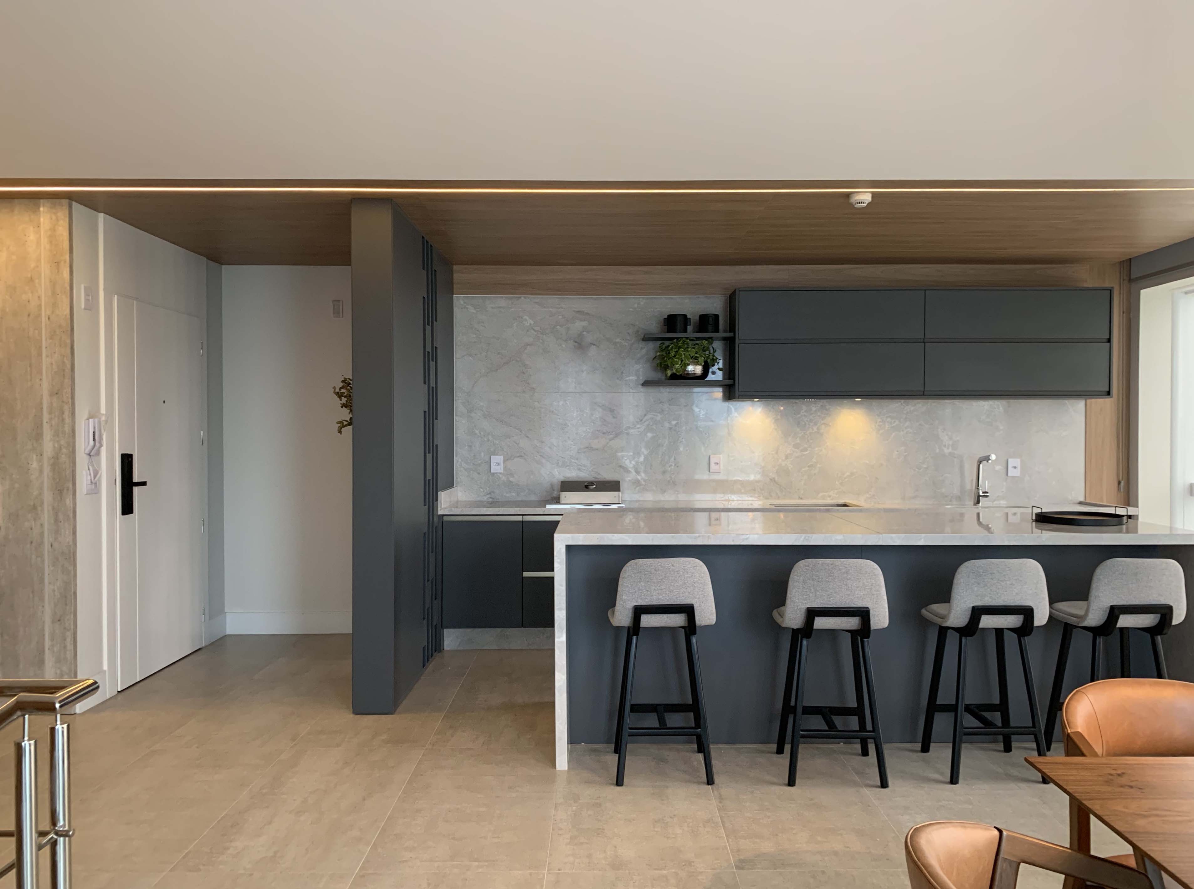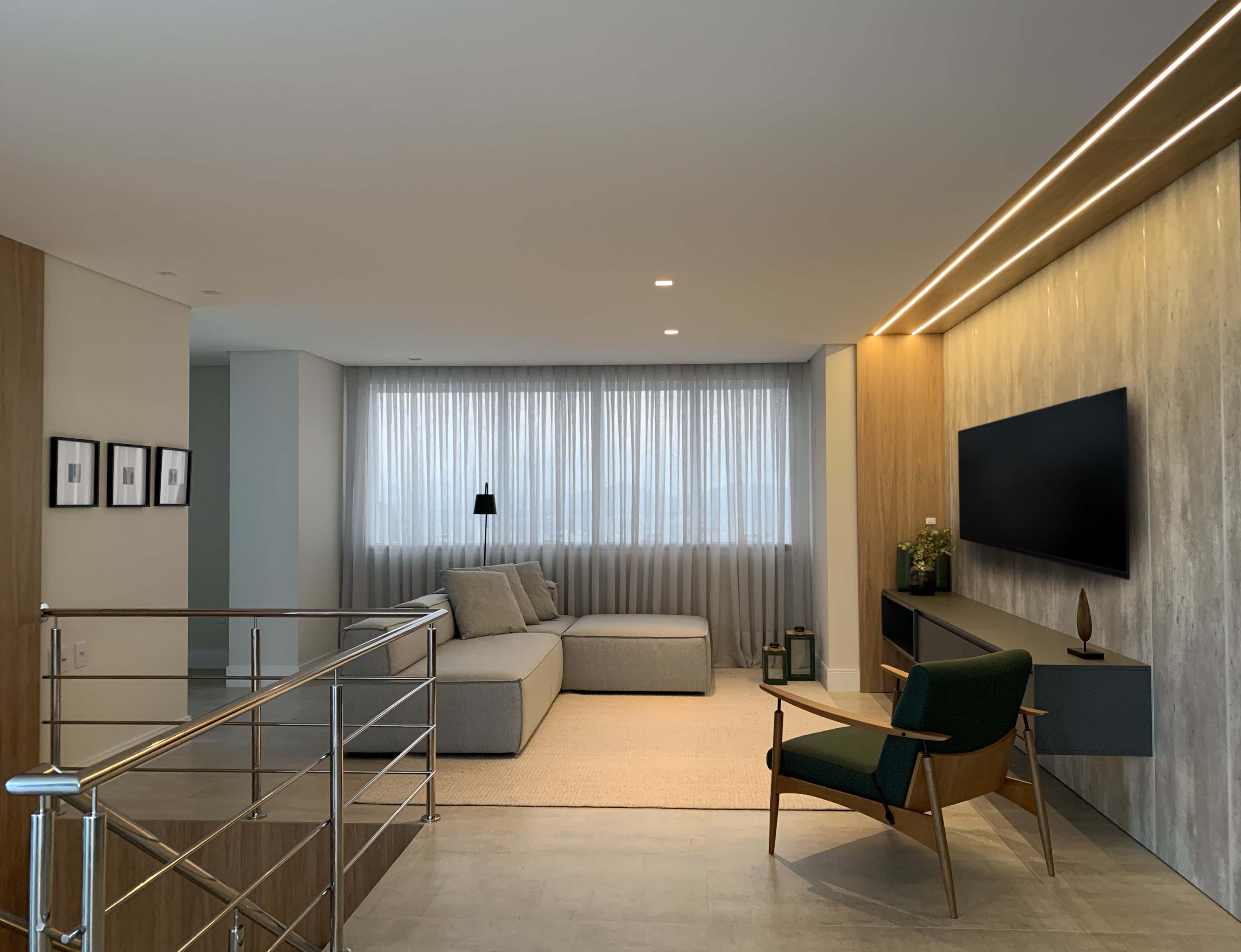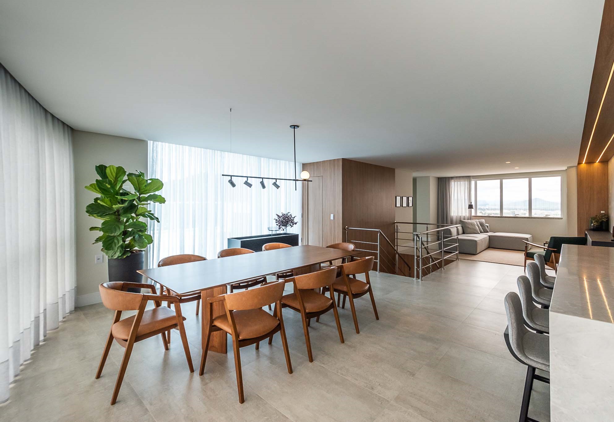 Com vista para a marina de Itajaí, esta cobertura duplex foi projetada para maximizar a interação entre os espaços internos e a paisagem, oferecendo conforto, funcionalidade e momentos de lazer. O projeto destaca uma integração fluida entre os pavimentos, proporcionando uma experiência única de habitar.